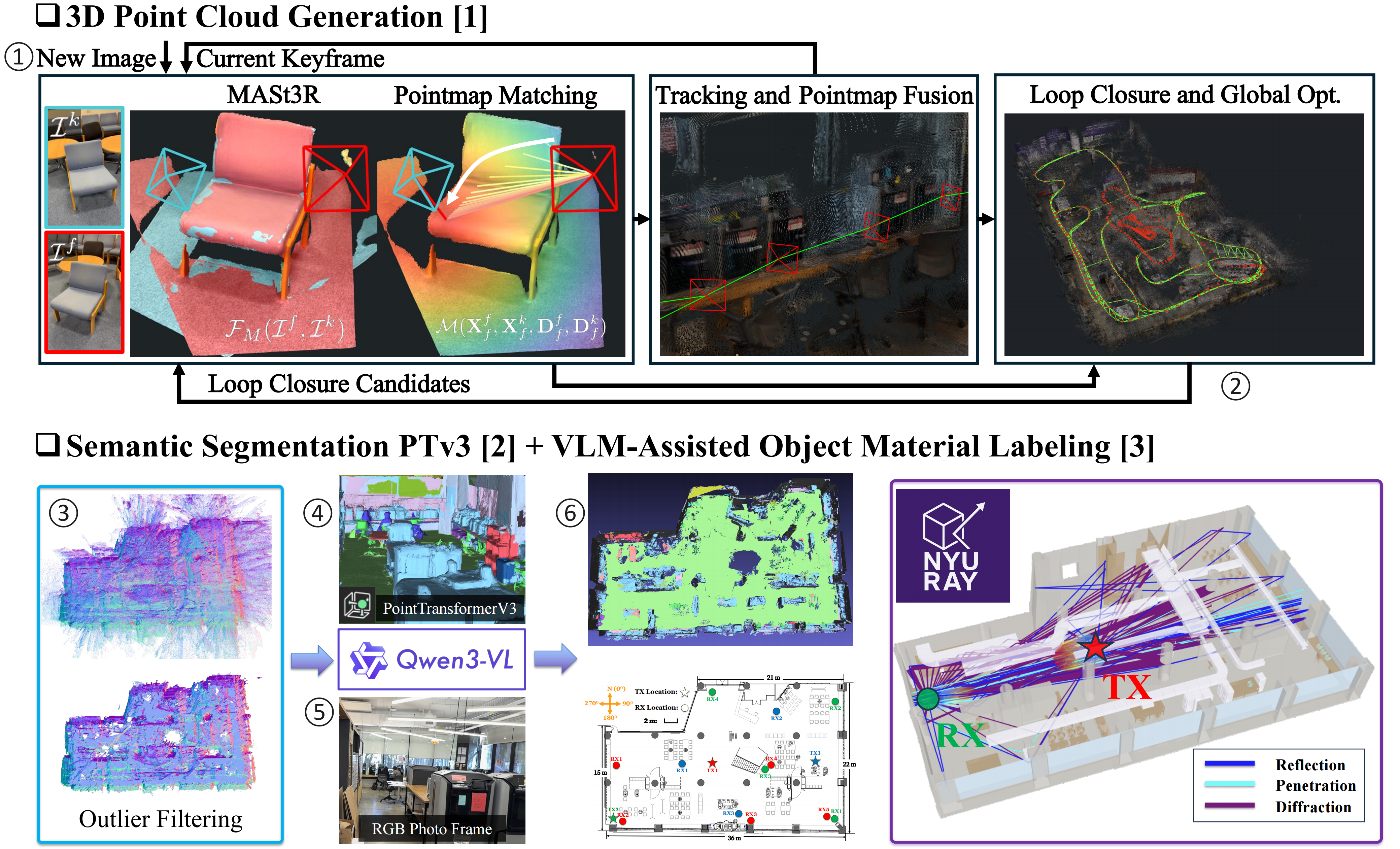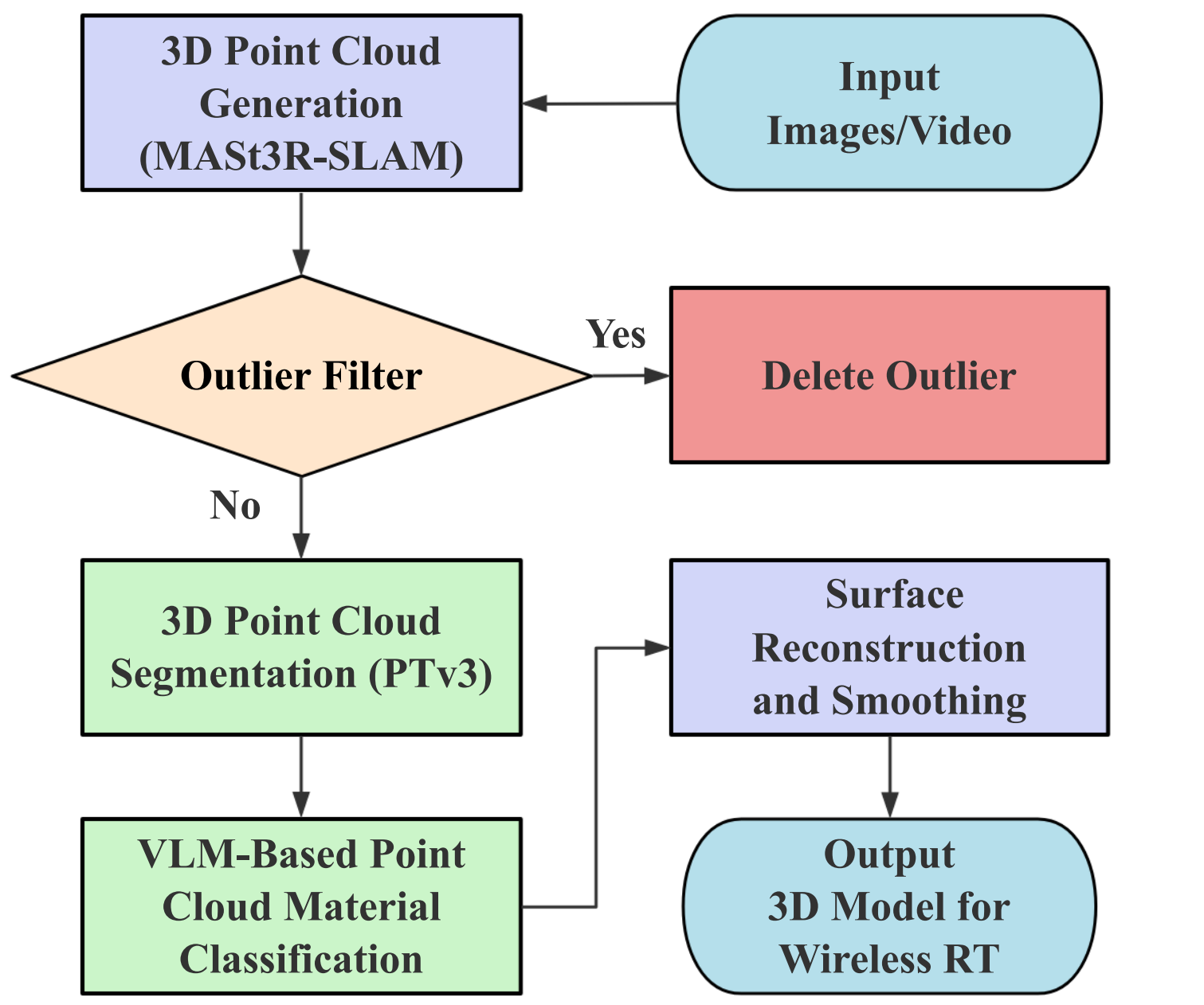 Developed an automated framework generating ray-tracing-compatible 3D models with electromagnetic material properties from RGB video, reducing reconstruction time from months to a few hours.
